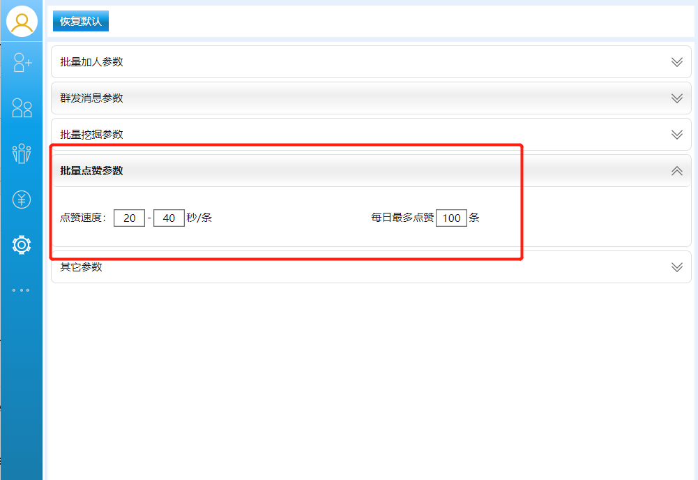 每日最多点赞:每天最多批量点赞量,可自定义,超过后会自动停止。