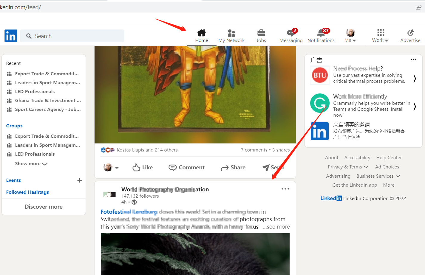 首先打开Linkedin主页 ,显示好友动态,往下拉多加载些动态