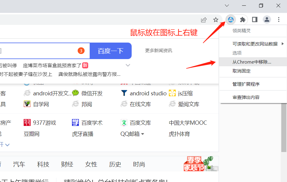 鼠标放在领英精灵图标上面右键->从Chrome中移除