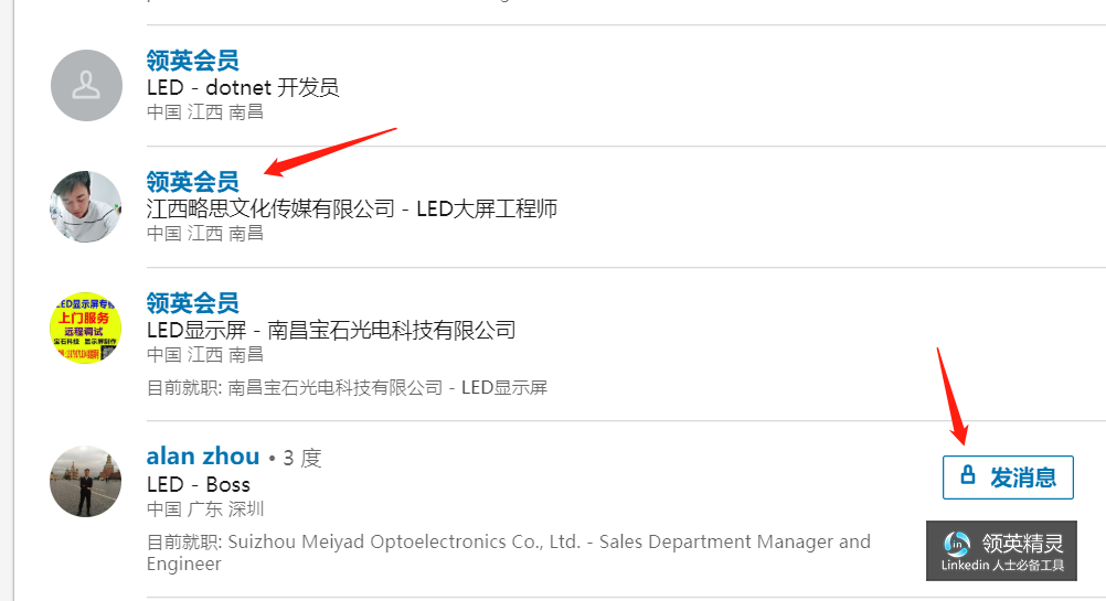 搜索到的结果大多显示“领英会员“或加有锁的标记,这种是无法加上的。