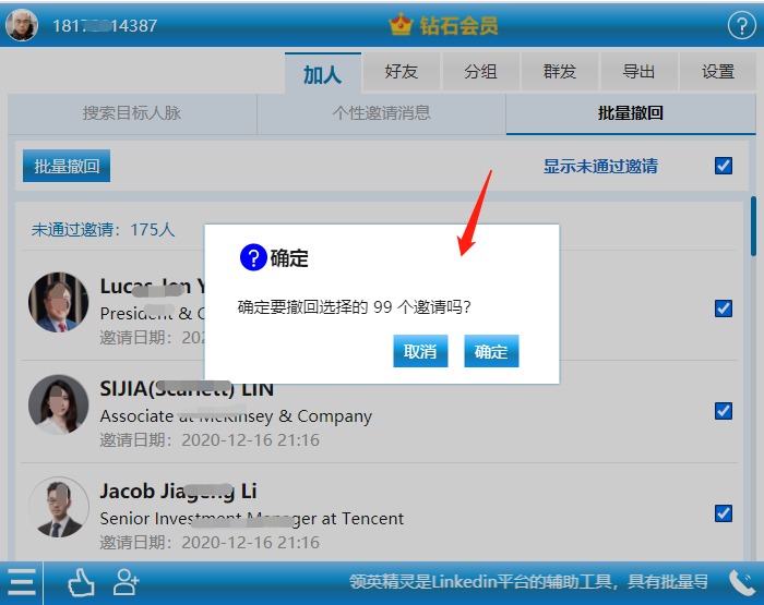 在2020年前是可以批量撤回的,之后领英不再支持批量撤回,只能一条一条撤回。如果要批量撤回的话,可借助领英精灵的批量撤回功能快速批量撤回。